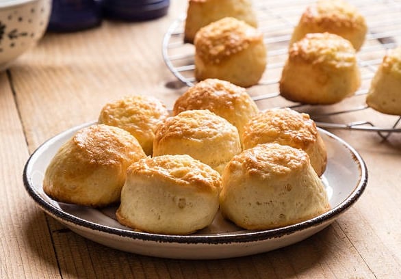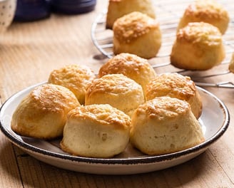 Big, buttery and perfect with tea. Our scones are fluffy inside with a golden crust – best served warm with butter, jam or cream.